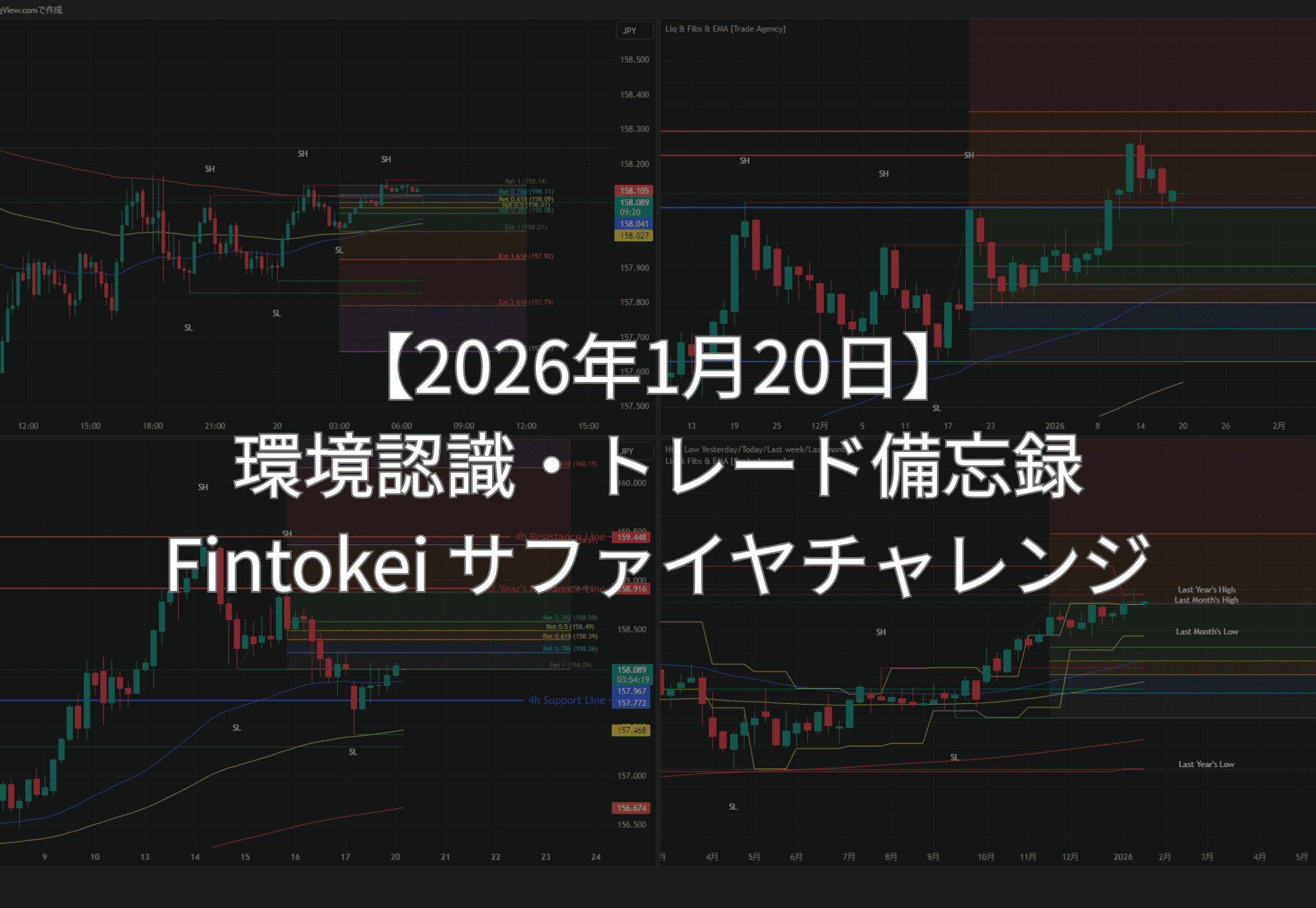 - 現在地: 直近の4h Support Line (157.772) を上抜けし、158.00付近で推移。ここを足場にできるかが鍵。