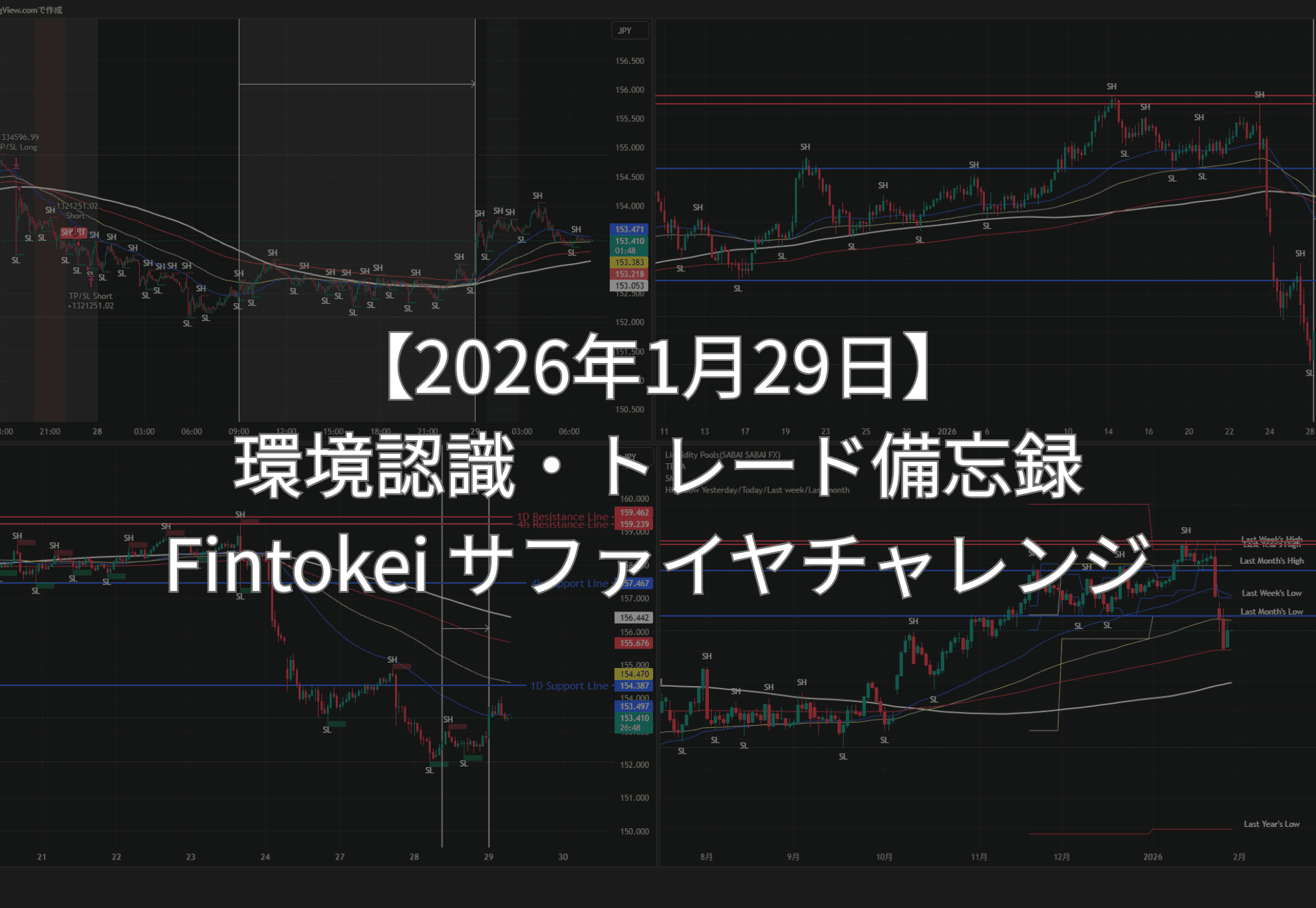 それでは本日も環境認識、トレード備忘録、Fintokeiサファイヤチャレンジ結果を報告していきます📈