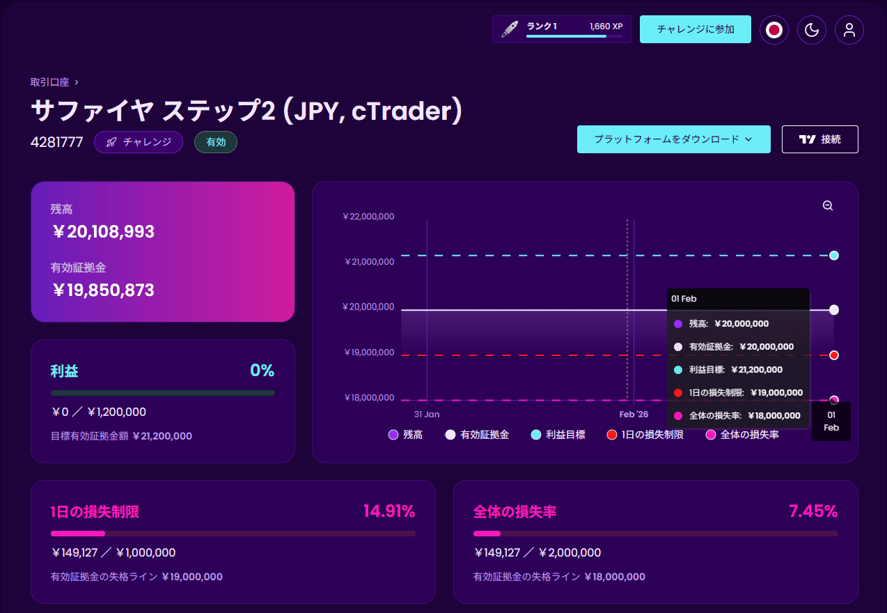 【2026年02月03日】環境認識・トレード備忘録・Fintokeiサファイヤチャレンジ22日目(プロ口座運用)