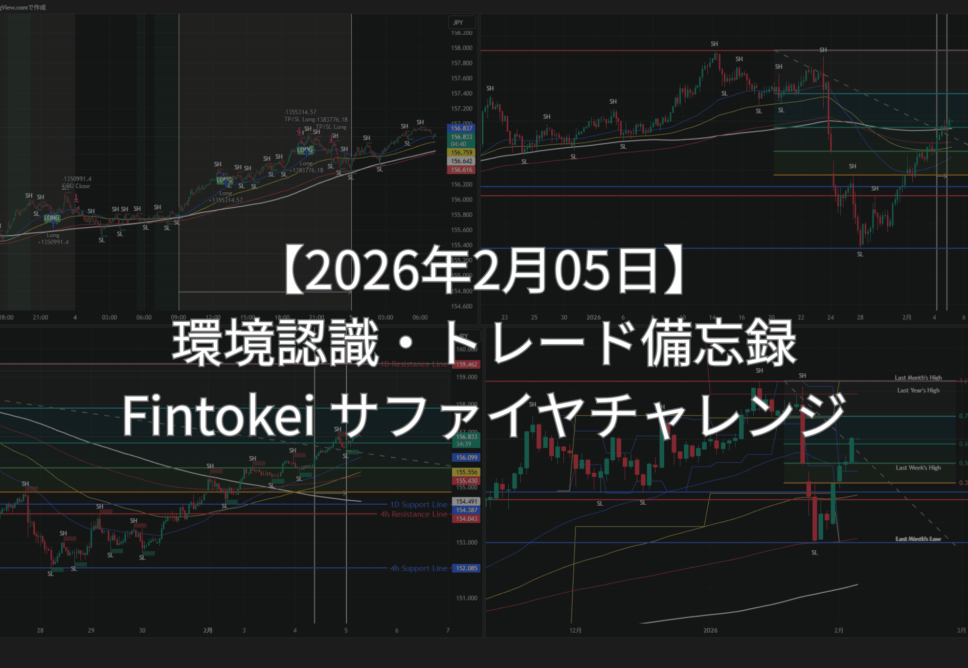 それでは本日も環境認識、トレード備忘録、Fintokeiサファイヤチャレンジ結果を報告していきます📈